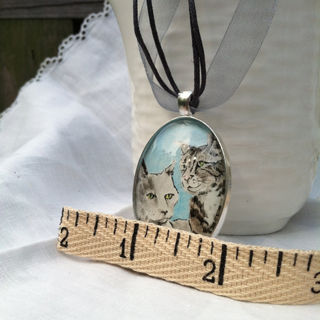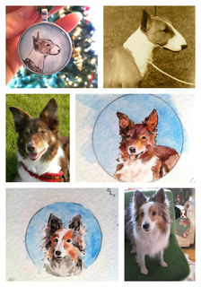 Send me a picture of your dog, cat, or any pet by convo or email, and I will paint an original custom watercolor miniature pet portrait. Then I set it under glass on a personalized pendant necklace, ready for you as wearable art to take with you wherever you go! A perfect gift for yourself, the pet lover in your life, or in memorial. This listing is for a single portrait, double portraits are available- please convo me for details. This picture is a sample.
