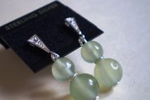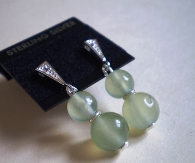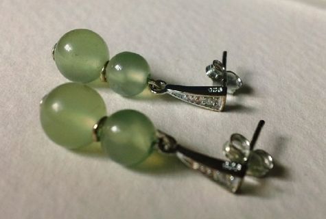 Earrings Natural Jade Stone Cubic Zirconia Sterling Silver