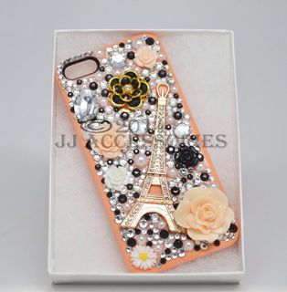 A beautiful case that will be a great addition to your case collection. With a lovely variation of peach, black and clear rhinestones, this case is a for sure treasure. Fits iphone 5/s; This case will be shipped in the gift box as depicted above.Only one case In stock , if you would like a larger order please allow time for assembly of the desired amount of cases. Thank you.