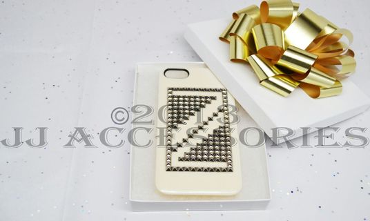 This phone case consists of a commonly known design with a touch of JJ accessories. The colors of the overall cell phone case are an off-white, and silver. This ONE case is specified for the iphone 5/s. this item is also shipped in a gift box.