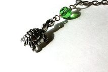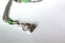 made with silver tone metal charm, silver tone chain, Czech fire pressed crystals, jump rings, clasp, and wire.