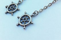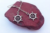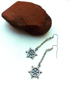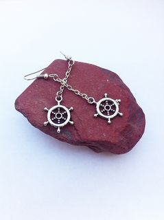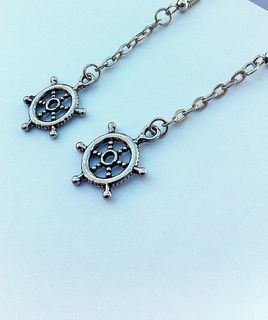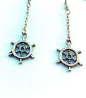 Silver ship wheel chain earrings, nautical earrings, captains wheel, ship wheel earrings, wheel earrings, silver earrings, chain earrings
