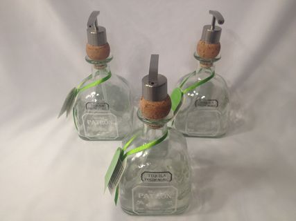 These unique recycled Patron Tequila bottles are an awesome addition to any bathroom, kitchen or man cave. You can add your own scented goodness of soaps, lotions or sanitizers. Nickel plated pump is durable and long lasting, not like the plastic cheapies.