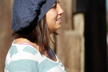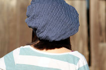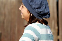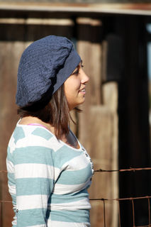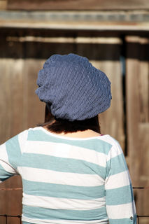 This sweet, romantic beret began life as a cozy men's sweater. But that's not what it is now! This cute denim blue beret is very slouchy and comfortable. The approx 21 inch band has lots of stretch. This cable pattern knit hat is 100% cotton. Rest assured that as you keep your head warm in romantic, renaissance style, you are keeping your carbon footprint to a minimum with this upcycled beret. Made using vegan material.