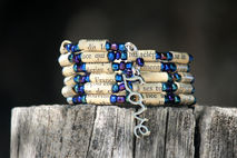 One size fits all. Handmade using paper beads, glass beads, and memory wire.