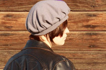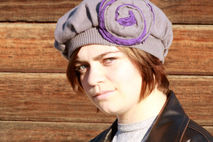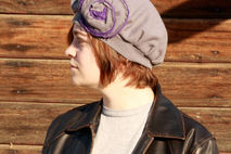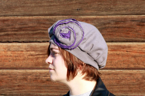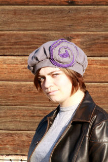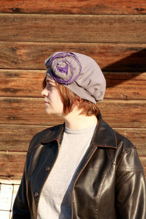 Someone accidentally shrunk and felted their gorgeous Hugo Boss virgin wool sweater. Their loss is your gain as this shrunken sweater created this charming vintage inspired wool hat. The gray is beautifully neutral and the gray and purple flower adds just enough vintage inspired charm. Rest assured that as you keep your head warm in romantic, vintage style, you are keeping your carbon footprint to a minimum with this upcycled beret. Very limited, only two were made! 100% wool, felted. The purple portion of the flower is 95% cotton and 5% cashmere.