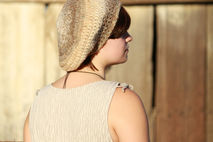 This cute brown and tan ombre crocheted beret fits most teen/adults. This neutral color is great for fall! Upcycled from yarn reclaimed from a sweater. Because it is upcycled yarn, I am not sure of the material, I believe it is wool or wool blend. One of a kind.