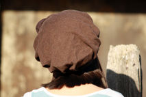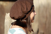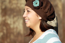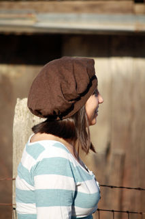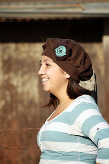 This sweet, romantic beret began life as a cozy men's sweater. But that's not what it is now! This cute brown beret is very slouchy and comfortable. The brown color is flattering on anyone and the brown and green flower embellishment adds personality and romance to the beret. There is even a reclaimed button peeking out of the middle of the flower. Hat is 100% cotton. The green portion of the flower is a blend of ramie and cotton. Rest assured that as you keep your head warm in romantic, vintage style, you are keeping your carbon footprint to a minimum with this upcycled beret. Price includes shipping! Ready to ship. Made using vegan material.