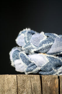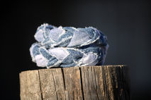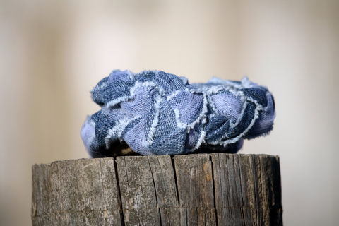 Do you love animals and babies and care about this planet that they live on? Shout it to the world! This double braided bangle says it for you. One braid for your strong side and the other for your tender side. The denim is tough and strong, like you are. The tulle is a reminder of the fun loving, flirty little girl who still resides deep down inside you. Ethical and sustainable, this bangle is made from reclaimed denim and scrap tulle using only my own labor. Hand sewn with cotton embroidery thread for strength and durability.