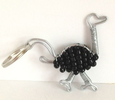 Beautifully hand crafted, wire art Keychain of a Male Ostrich.