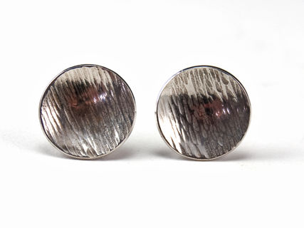 These are 7/16" in diameter and are made of sterling silver. They come with a silver and plastic ear clutch for your personal preference.