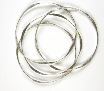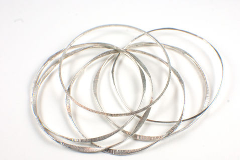 Silver bangles that ebb and flow around your wrist. These have been textured and forged to add funky flair. This is great stacked or worn alone.