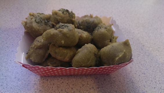 Materials: Oat flour, fresh spinach, fresh parsley, tuna