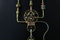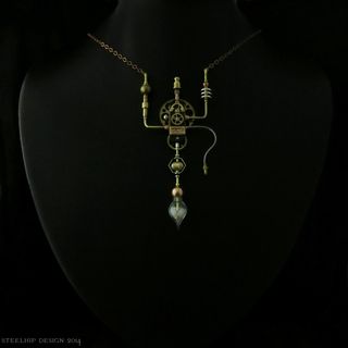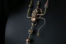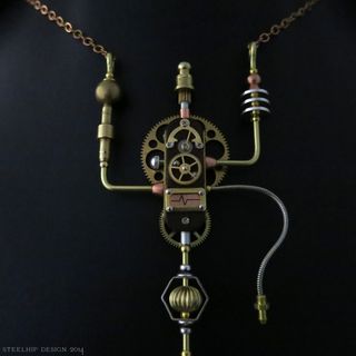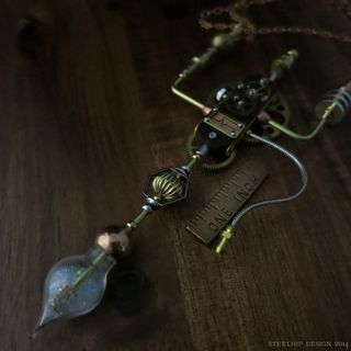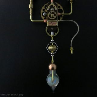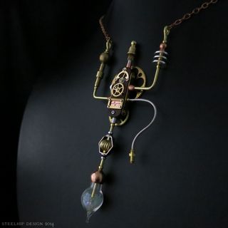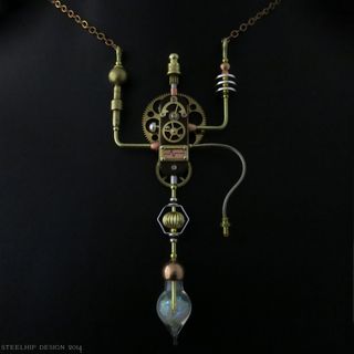 Still theatrical but smaller than my original "laboratory" pieces it will fit on a corseted (and maybe heaving) Victorian breast. Definitely a show stopper at your next event!