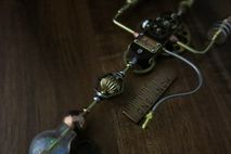 A bit of steampunk and a dash of alchemy with a spoonful of mad scientist. Creating a miniature machine with a control panel is fun. Another design that fits into my "laboratory" style pieces.