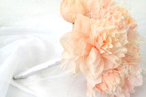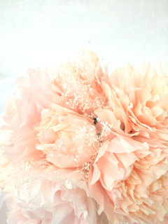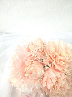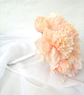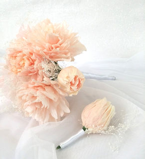 This "forever" bouquet that won't wilt or die, that you can have as a keepsake long after your special day is over. This bouquet is made up of paper peonies, peony buds, and white preserved baby's breath.