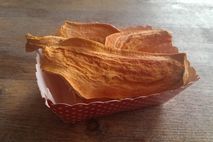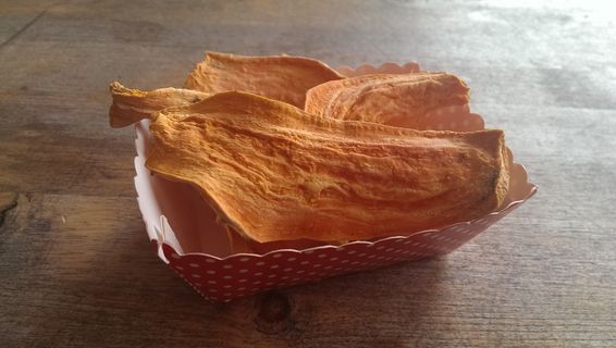 Sweet potatoes and nothing else! Slowly dehydrated to give a much healthier version of a rawhide chew. Your pup will love you for these!