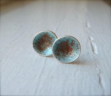 10mm, fine silver, sterling silver, sterling silver ear nuts, torch fired vitreous enamels