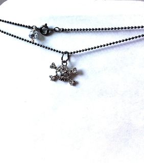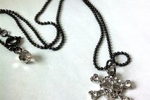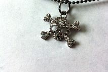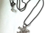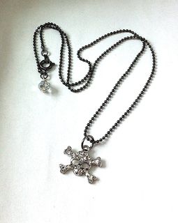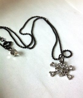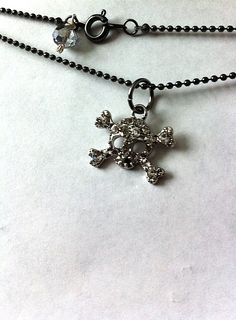 This cute and sparkly rhinestone skull and crossbones necklace will add the perfect bling to anyone's outfit. Perfect for any age any time of year. I've added the skull charm to a 18" gunmetal grey ball chain and added a clear Swarovski crystal at the clasp.