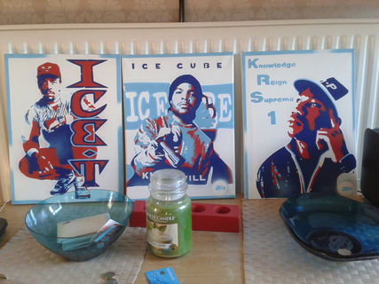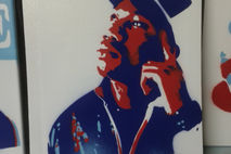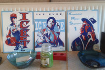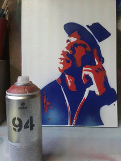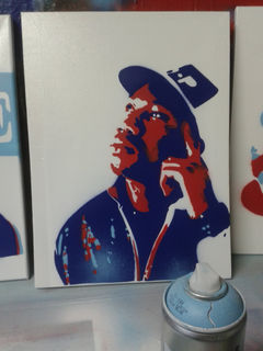 Painting of the hip hop legend Krs One from the 80s era, painted using hand drawn, hand cut stencils and spray paints.