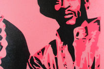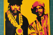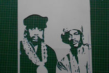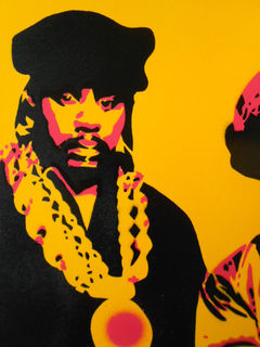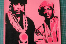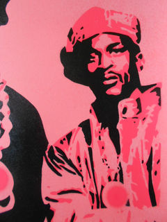 heavy duty card sprayed with 2 different stencil layers added on top and lettering,signed and dated by the artist.