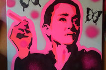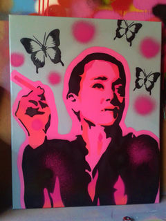we can discuss what u would like including colours and sizes, then i normally work on it, then do a practice stencil first that you can look at, then when your happy i will paint the original for you and sort out the shipping.