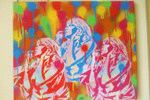 painting made with stencils and spraypaint on canvas,textured and layered paint finish.