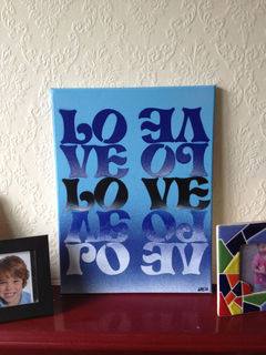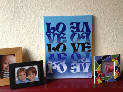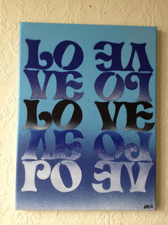 painted using handdrawn,handcut stencils and spraypaints,inspired by the famous love painting by Robert Indiana,with a hint to the beatles song too,love is all you need.