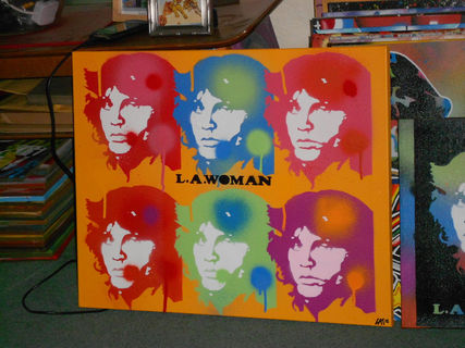 painting of jim morrison from the doors done with handcut stencils in a pop art style on canvas