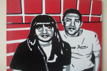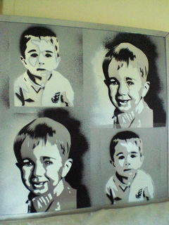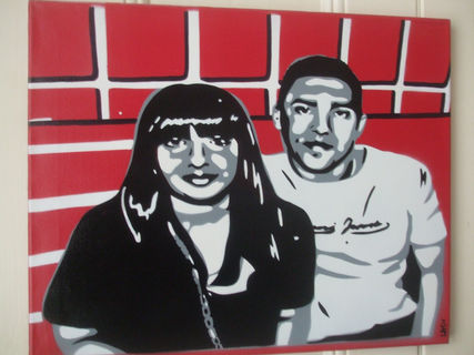 1- painting of jack for a friend in a warhol style in black grey and white.
