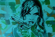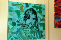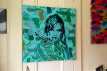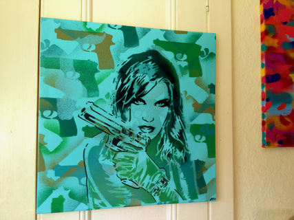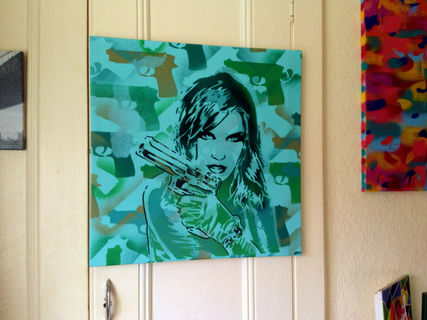 pop art style painting made with handdrawn,handcut stencils and spraypaints on ready to hang canvas.