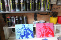 stencil & spraypaints on wood.