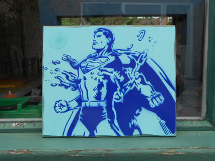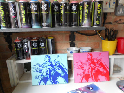 superman stencil art, pink or blue