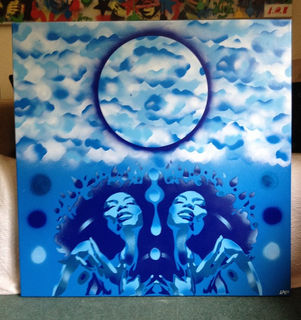 painted using handcut stencils and spraypaints on large canvas part of my seasons series
