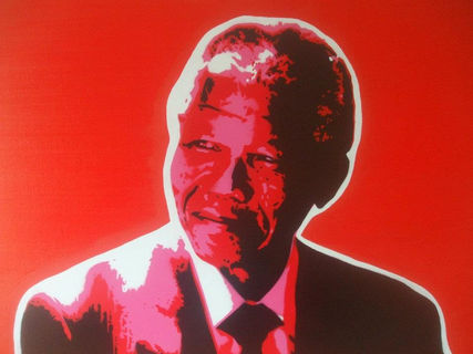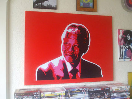 painting of the hugely inspirational and iconic figure Nelson Mandela painted using hand cut stencils and spray paints.