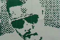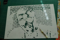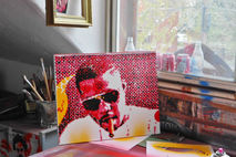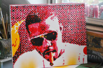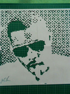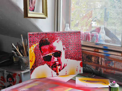 sweet dreams are made of these,4 layer stencil painting of Nas, painted using hand cut stencils and spray paints in a oldskool computer pixel style.