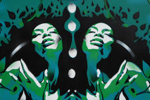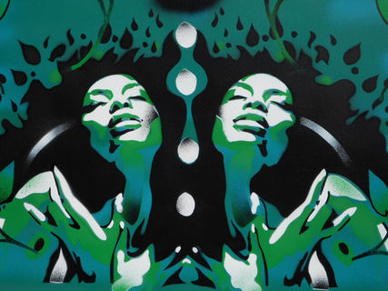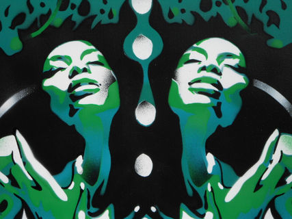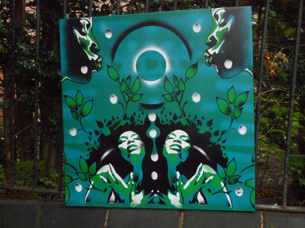 painted using several handcut stencils,sprayed through on to canvas,part of a series called four seasons.