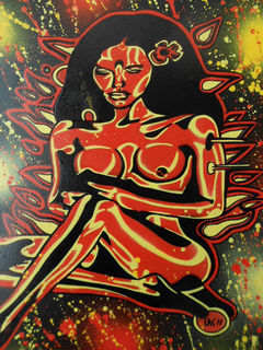 stencil painting from an old illustration,painted using handcut stencils and spraypaints