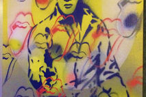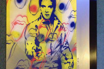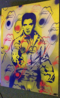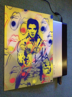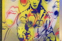 painting of the king,elvis presley mixed with rolling stones logo in apop art style.