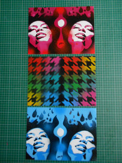 hand painted fridge magnets made with stencils & spraypaints,would brighten up any kitchen