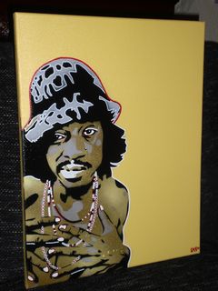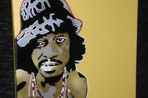 a painting on quality canvas of hip hop artist andre 3000,made with hand cut stencils and mtn hardcore spraypaint.