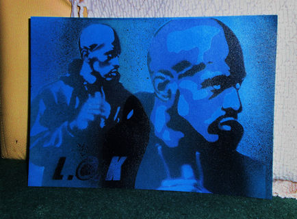multi layered stencil art of hip hop legend rakim,two seperate hand cut stencils blended together.