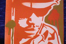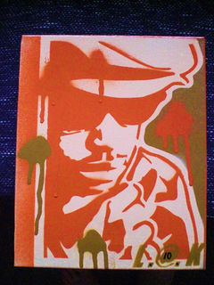 painting of the late great guru of the hip hop group,gangstarr,this is from one of gangstarrs album covers,made with stencils & spraypaints