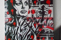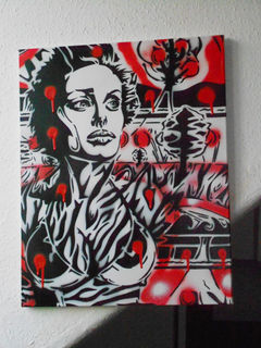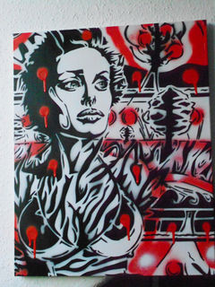 painting of woman on canvas,stencil art,zebra,jungle,angelina jo