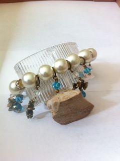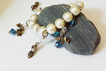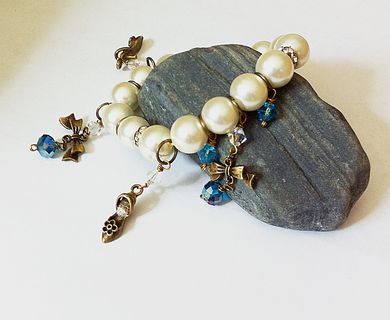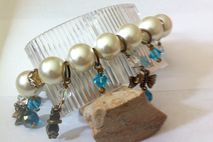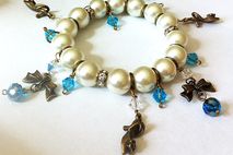 handmade with glass pearls, Swarovski crystals, metal charms, stretch cord, jump rings, wire