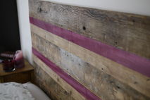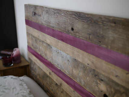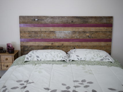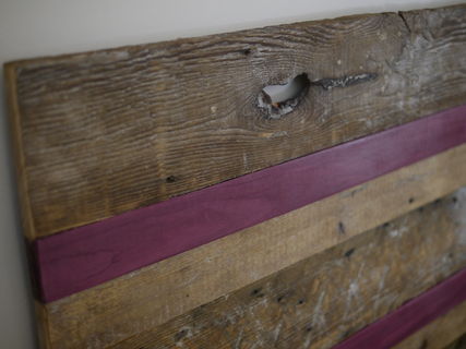 I named this piece “The Holey One” because, as you can see, this headboard has some natural holes in it from where the knots fell out.