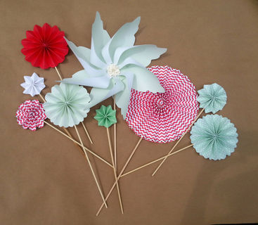 These paper pinwheel wands add the perfect touch to any kind of celebration. These wands are an assortment of pinwheels sized 3", 4", and 6" and stand on a dowel measuring 1' tall. They look so nice when added to candy jars on buffet tables, and children love them! They can be used for whatever your heart desires.
