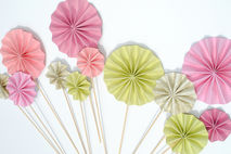 These paper pinwheel wands add the perfect touch to any kind of celebration. These wands are an assortment of pinwheels sized 3", 4", and 6" and stand on a dowel measuring 1' tall. They look so nice when added to candy jars on buffet tables, and children love them! They can be used for whatever your heart desires.