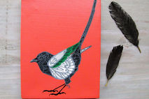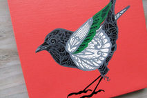 This 6 x 8" gallery wrapped stretched canvas is painted with acrylics. All details are hand painted and there were no stencils used. Each animal painting is unique and contains it's own designs. It is wired on the back to allow for easy hanging. The sides are completely painted and this piece is ready to be hung on your walls.