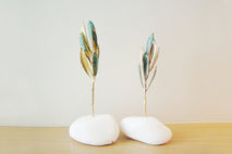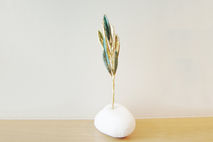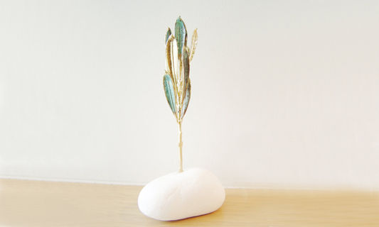 This real olive twig, electroplated sculpture measures 16cm in height and 7cm (6.30'' x 2.76'') at the base of the stone but will slightly vary each time.
